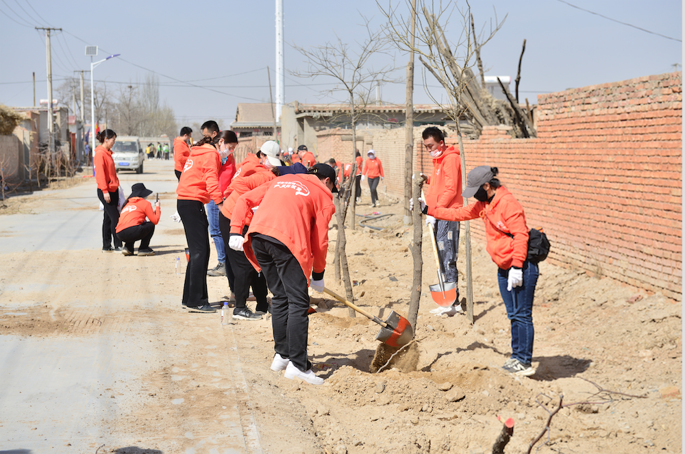 本次活动共有163名志愿者参与,共种植500余棵树苗。在集团党支部的带动下,参加植树的党员、志愿者热情洋溢,干劲十足,大家分工协作,挥锹铲土、扶正苗木、培土围堰,认真执行每道工序。经过近2个小时的挥汗付出,新种下的百棵树苗向阳而立,蓄势而上,为贺兰山农牧场增添盎然绿意。